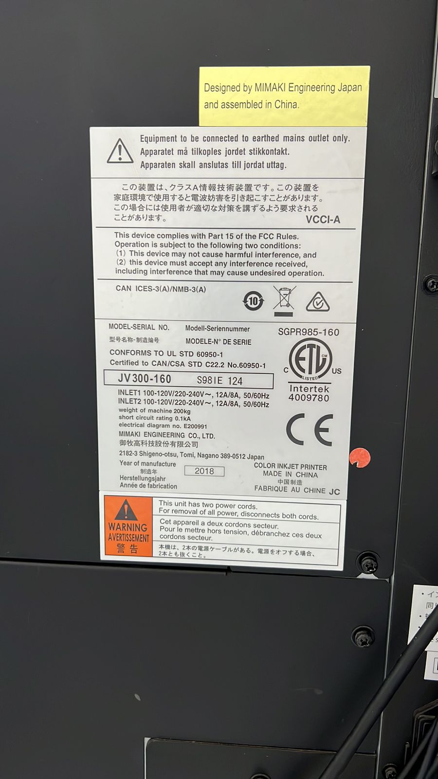 Plotter de impressão Ecosolvente JV300-160 Mimaki Ano 2018