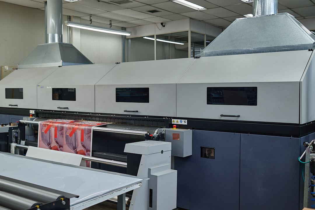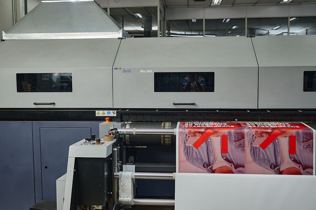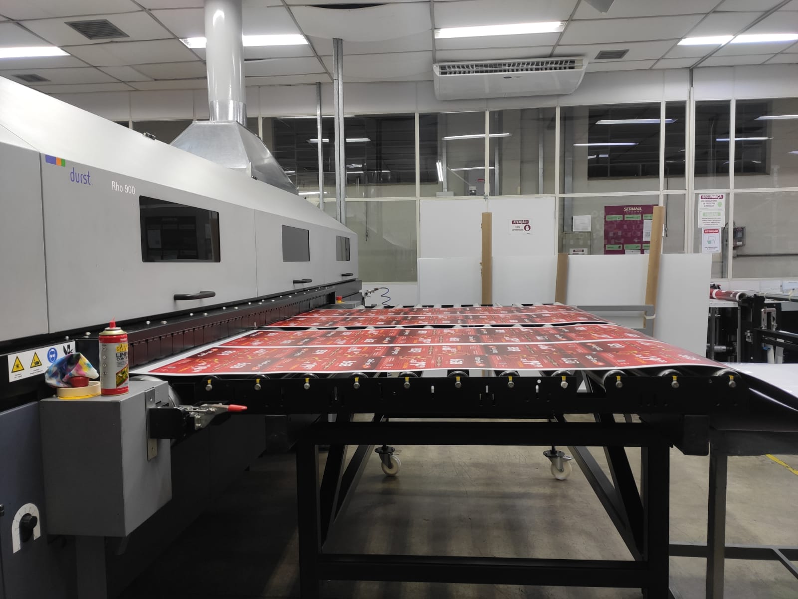 A Impressora UV  Rho 900 da Durst é uma impressora com largura de 250 cm focada em produção (220 m2/hora), com 600 dpi de resolução, acionamento via motor linear, sistema Quadro Array 30D e que traz possibilidade de ampliação do padrão de cores através da adição de tons especiais (além do padrão CMYK) para trabalhos especificamente com o segmento de embalagens, decoração, objetos transparentes etc.;