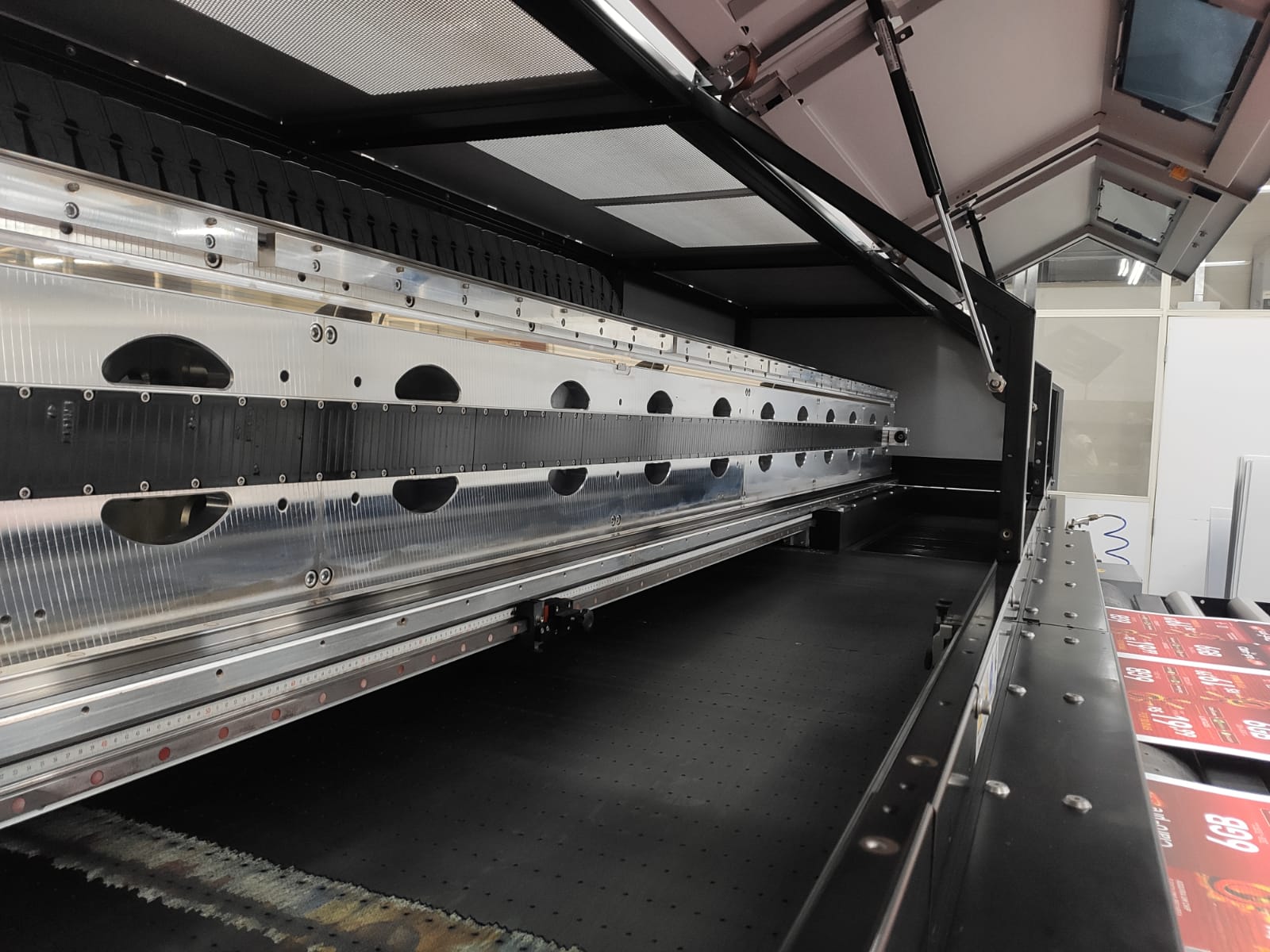 Uma nova tecnologia de vácuo e cintas de transporte aplicada à mesa à qual o substrato é preso e transportado através dos cabeçotes de impressão da máquina assegura não somente que o processo ocorra com maior estabilidade, como também sem danos ou rasuras na mídia.
