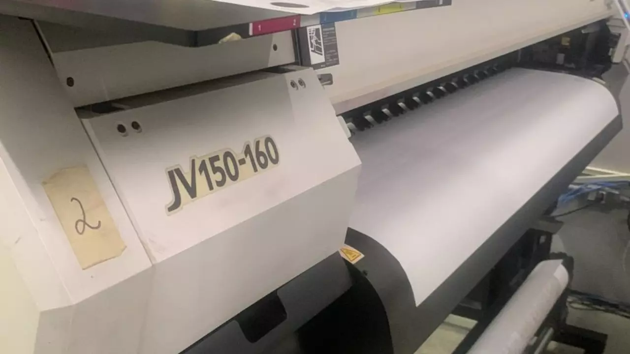 Os 3 aquecedores inteligentes fixam as gotas colocadas sobre o material de trabalho. Ao utilizar a tecnologia original da Mimaki para o aquecimento do material a uma temperatura controlada, a tinta pode ser fixada e, ao mesmo tempo, garantir que a fidelidade de cor do arquivo será mantida. Assim, a JV150 permite que a mídia seja rebobinada já seca para esta operação.